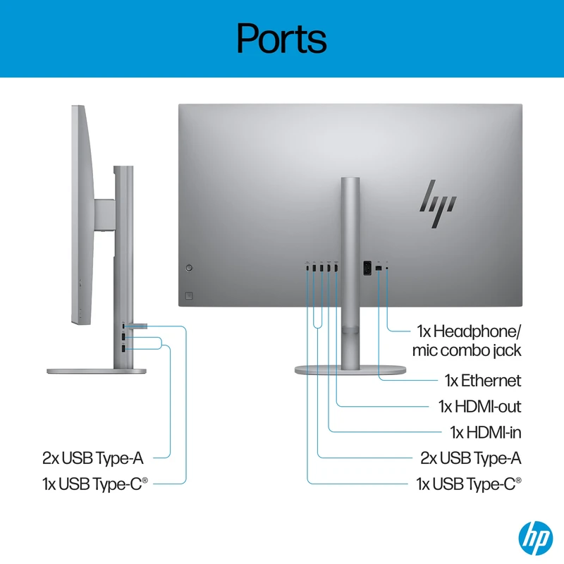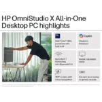 اقلام همراه: پایه قابل تنظیم ارتفاع و زاویه، کابل USB Type-C سرعت 40Gbps، ماژول سیم جمعکن، کیبورد و ماوس بیسیم HP Studio